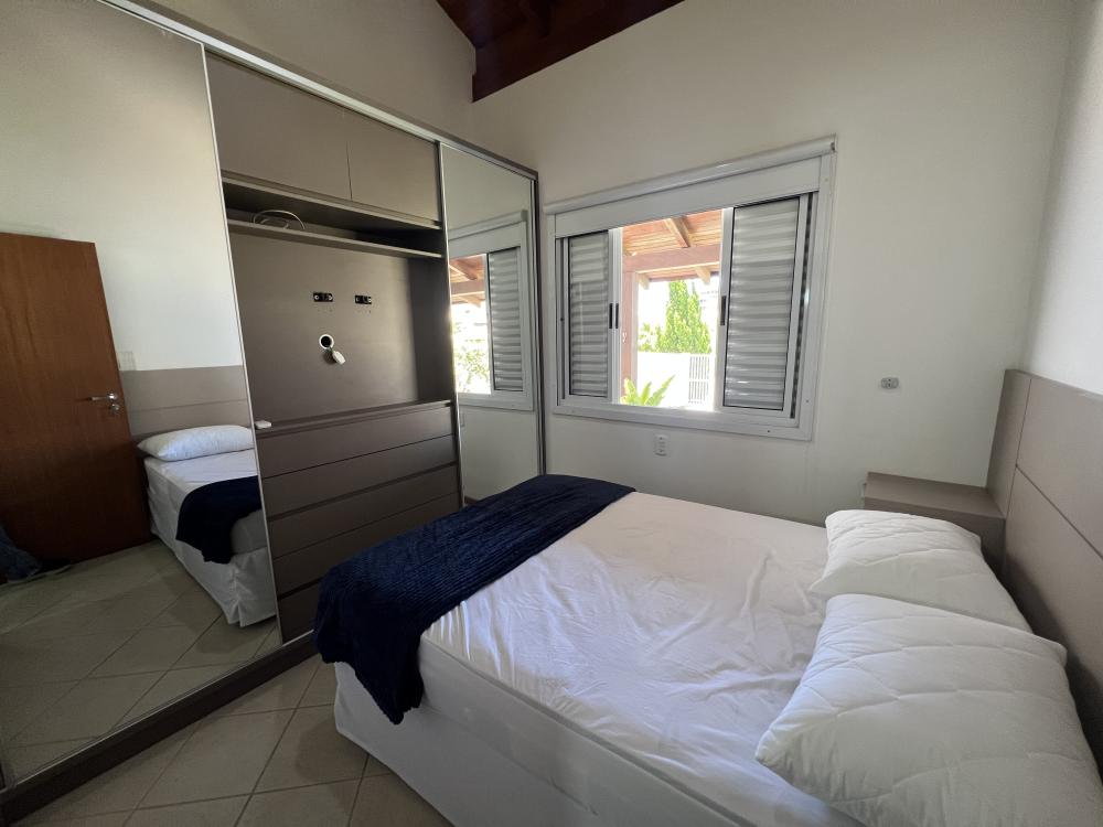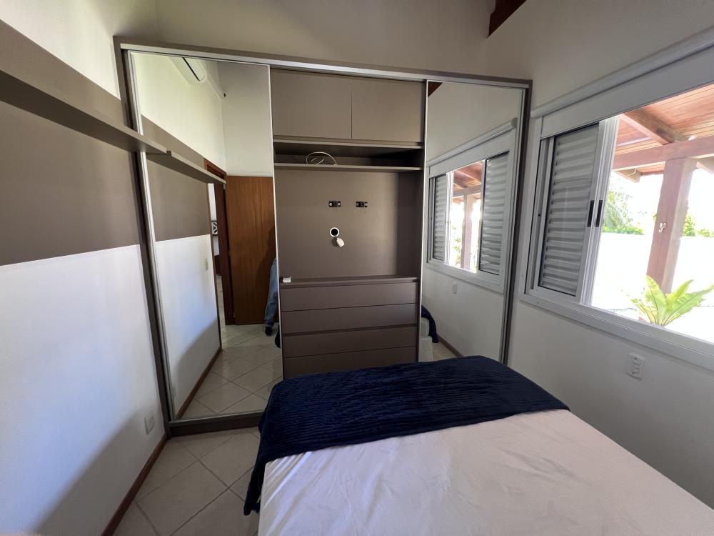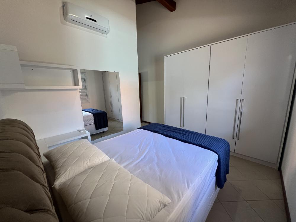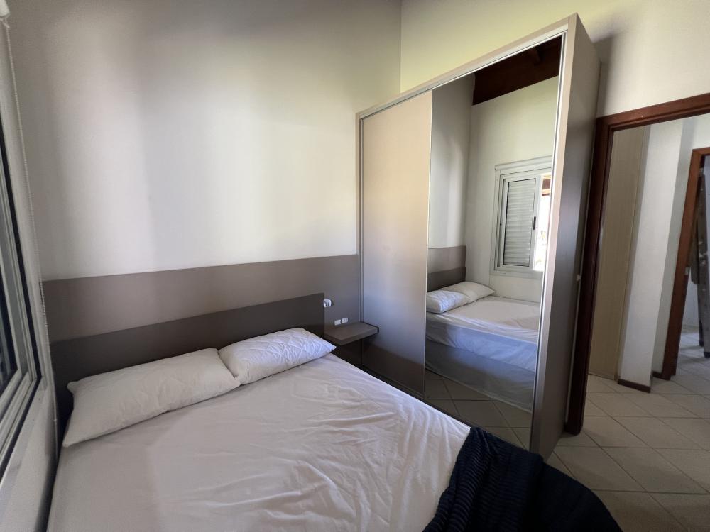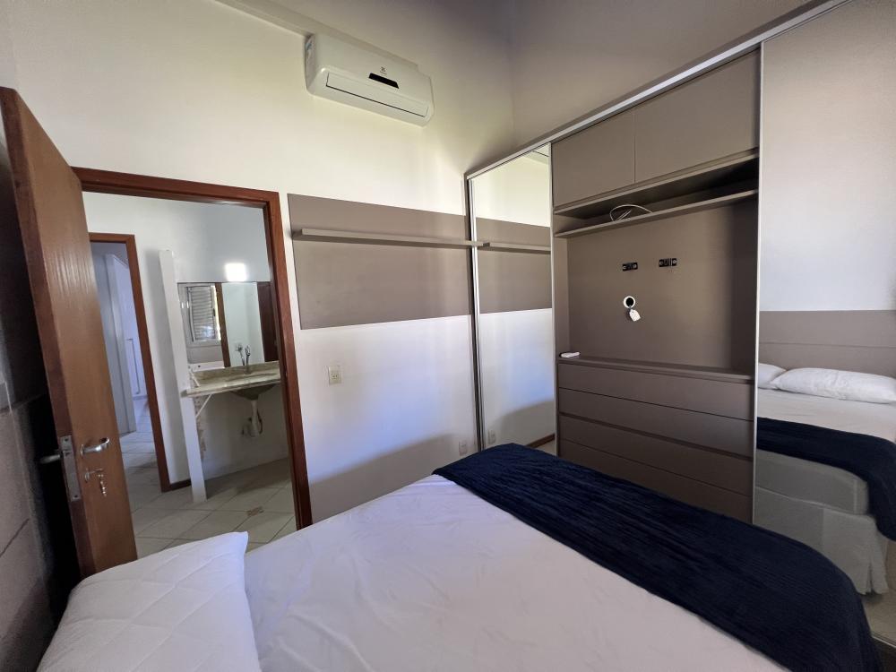 * 01 dormitório com cama de casal, guarda-roupa, blackout, persiana, espelho e ar condicionado split;