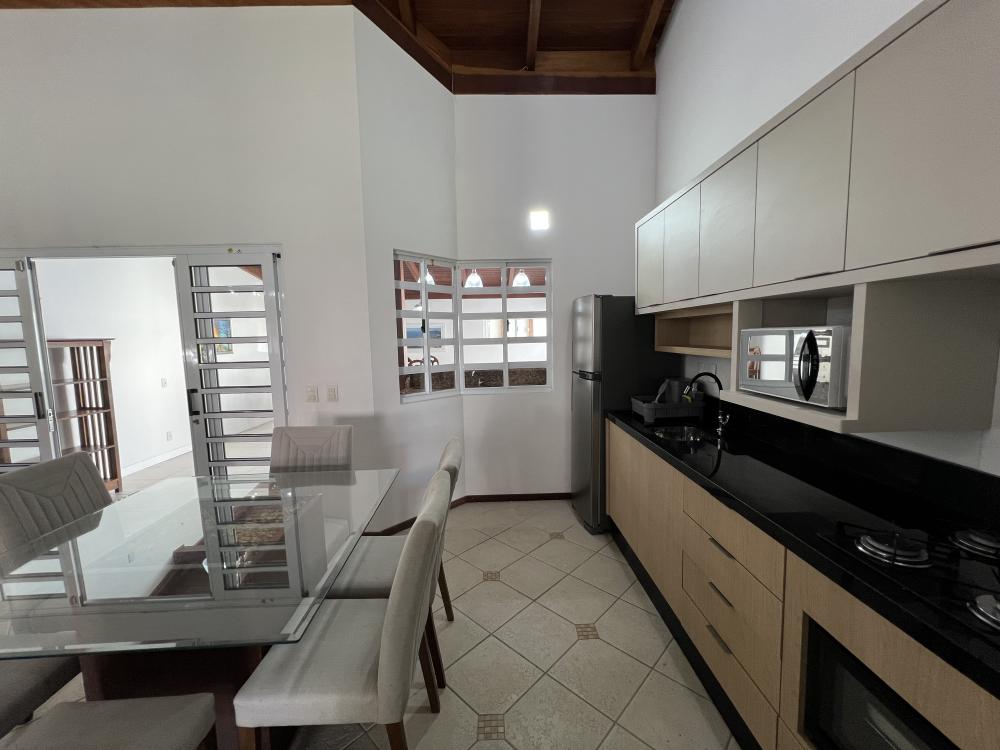 * Cozinha completa com utensílios domésticos, micro-ondas, geladeira, fogão, forno, mesa e cadeiras;
